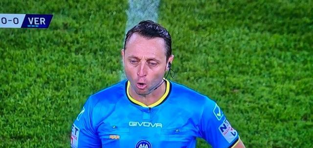 比赛临近尾声,主裁阿比索判罚维罗纳37号球员贝拉-科沙在本方禁区对莱切前锋卡马尔达犯规,在经过VAR回看后,阿比索向全场观众宣布判罚时出现了口误:“经VAR回放,乌迪内斯37号球员在禁区内并未犯规。最终判罚:点球取消。维罗纳,对不起!维罗纳,对不起!”